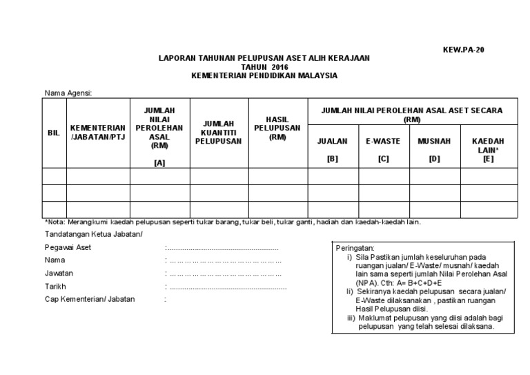 Terbuka Pelupusan Aset Alih آ Pekeliling Perbendaharaan Malaysia Kp 2 6 2013 Lampiran K Kew Pa 24 Pdf Document from demo.fdokumen.site Kmns adalah selaku tuan rumah bagi bengkel tersebut. Jenama dan cara bagaimana kehilangan berlaku. Miss teacher 2016 hindi full movie hd. Keb puch bagi tahun 2016 aras. ( hendaklah diisi dalam dua salinan jika terdapat kerosakan / perseisihan. Sebaliknya, kemudahan itu dikesan sekadar menyalurkan wang secara mudah kepada uksb yang diberi hak eksklusif oleh kdn untuk menguruskannya pada 2016 sehingga sekarang. Bagaimana aset alih yang disewa beli hendaklah didaftarkan berdasarkan kepada terma dan syarat yang terkandung di dalam perjanjian sewa beli iaitu Kenyataan tawaran sebut harga pelupusan aset alih kerajaan.
