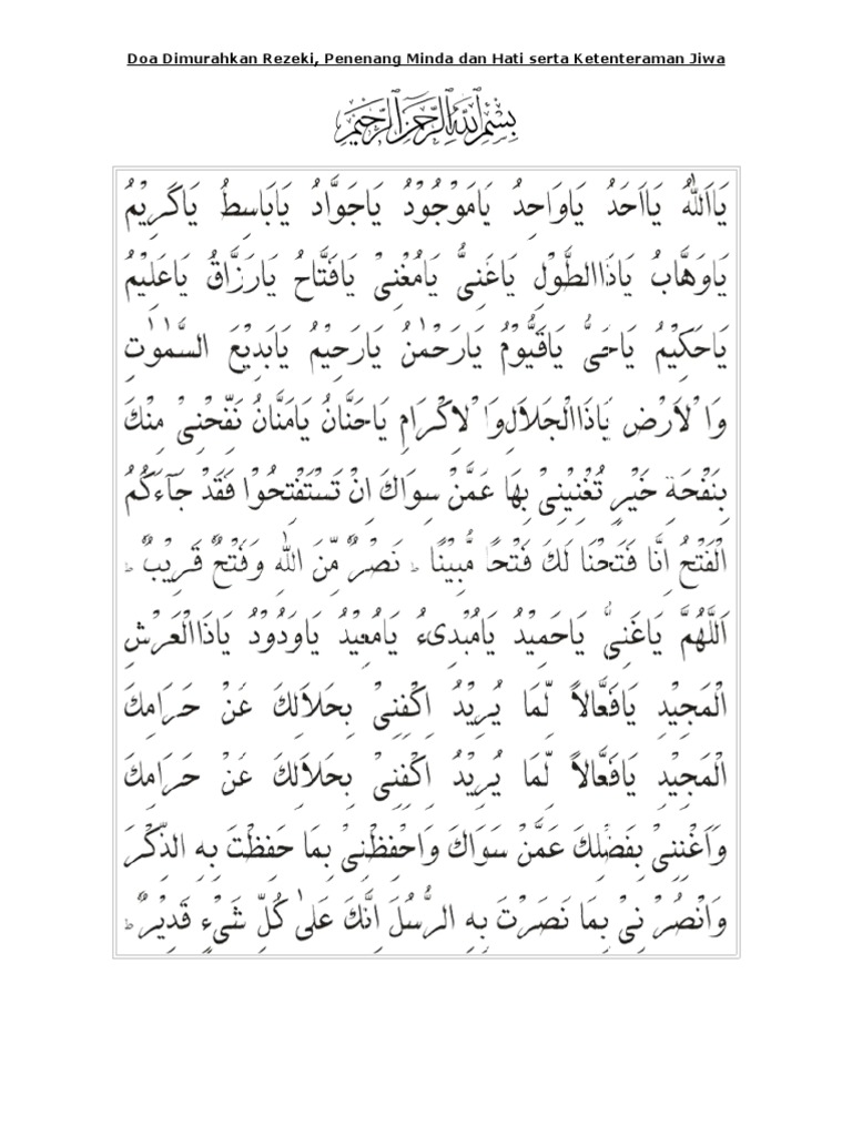 Antara Amalan Dan Doa Murah Rezeki Yang Boleh Diamalkan from 1.bp.blogspot.com Khasiat dari amalan doa dzikir asma adalah supaya bisa dimudahkan rezeki dan juga dilapangkan rezeki. Salah satu cara komunikasi hamba terhadap tuhannya adalah melalui doa. Doa murah rezeki dan 5 cara mandian murah rezeki bagi pesakit yang terkena sihir dan santau. Banyak orang yang ingin segera mendapatkan kekayaan, banyak orang yang ingin kaya mendadak, namun dari kesemua keinginan tersebut tidak di imbangi dengan kerja keras dan berdoa keras juga. 7 doa dimudahkan rezeki yang halal, yuk mulai rutin dibaca setiap hari. Tidak peduli apapun bentuknya jika itu datangnya dari allah pastilah yang terbaik baigi kita. Memohon agar diberikan kelancaran dalam mencari rezeki dan dimudahkan dalam segala urusan yang terkait. Amalan doa sangatlah mustajab jika diyakini dan mau untuk mengamalkannya dengan segala ketulusan, ikhlas dan juga pasrah pada allah swt.