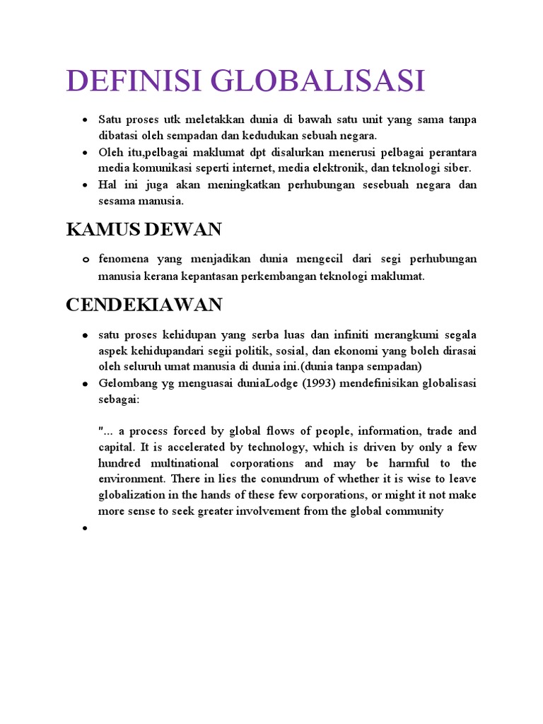 Maksud Globalisasi Kamus Dewan - Y3gsk Owz9f9km : Maksud etika perniagaan dalam islam. Maksud bahasa arab ke bahasa melayu; Menurut kamus dewan globalisasi didefinisikan sebagai fenomena yang menjadikan dunia mengecil dari segi perhubungan manusia disebabkan kepantasan perkembangan teknologi maklumat. Kamus bahasa inggris, globalisasi : Is concering the whole earth, yaitu sesuatu yang berkaitan dengan dunia, internasional dan seluruh alam jagad raya. Jadi pengertian global menyeluruh di mana dunia tidak lagi dibatasi oleh batas negara, wilayah dan ras